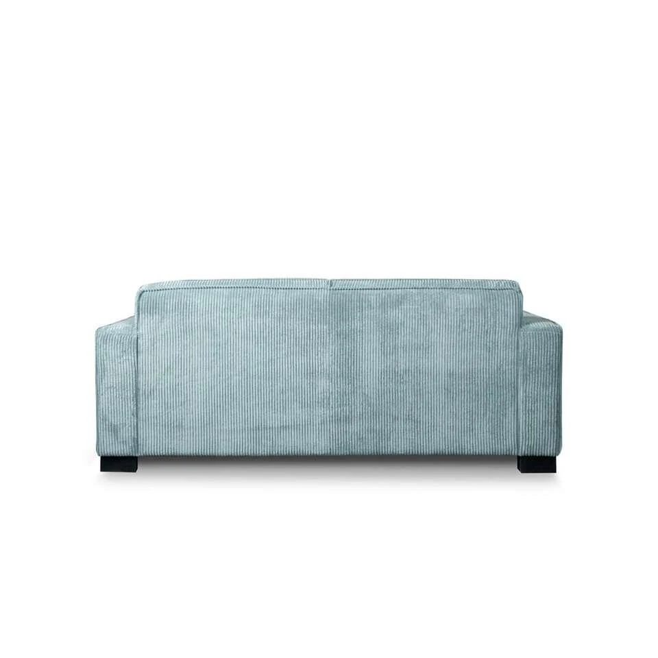 Bank Stuttgart 3-zits is super comfortabel en heeft een retro uitstraling door de ribcord stof bekleding. De ijsblauwe kleur geeft de bank een frisse en trendy look! Deze kleur maakt dat deze bank een echte eyecatcher is in jouw interieur. De rijkgevulde comfortabele kussens zorgen ervoor dat je uren lang heerlijk zit op deze bank. Bank Stuttgart is bekleed met sterke, slijtvaste ribcord bekleding. Deze ribstof is van zeer hoogwaardige kwaliteit en geschikt voor intensief woongebruik. Dus wil je graag dat je bank tegen een stootje kan, dan is de Stuttgart een slimme en goede keuze. Bovendien is deze ribstof goed bestand tegen direct zonlicht en niet gevoelig voor pilling.
