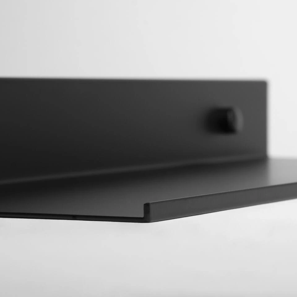 Deze zwarte wandplank van metaal is eenvoudig aan de muur op te hangen. Door het strakke ontwerp en de zwarte kleur is de wandplank bovendien gemakkelijk in te passen in elk interieur. Of je nou een modern, minimalistisch of industrieel ingericht huis hebt, deze wandplank staat altijd prachtig. Kleed de wandplank mooi aan met andere woonaccessoires en geniet dag in dag uit van het mooie resultaat.