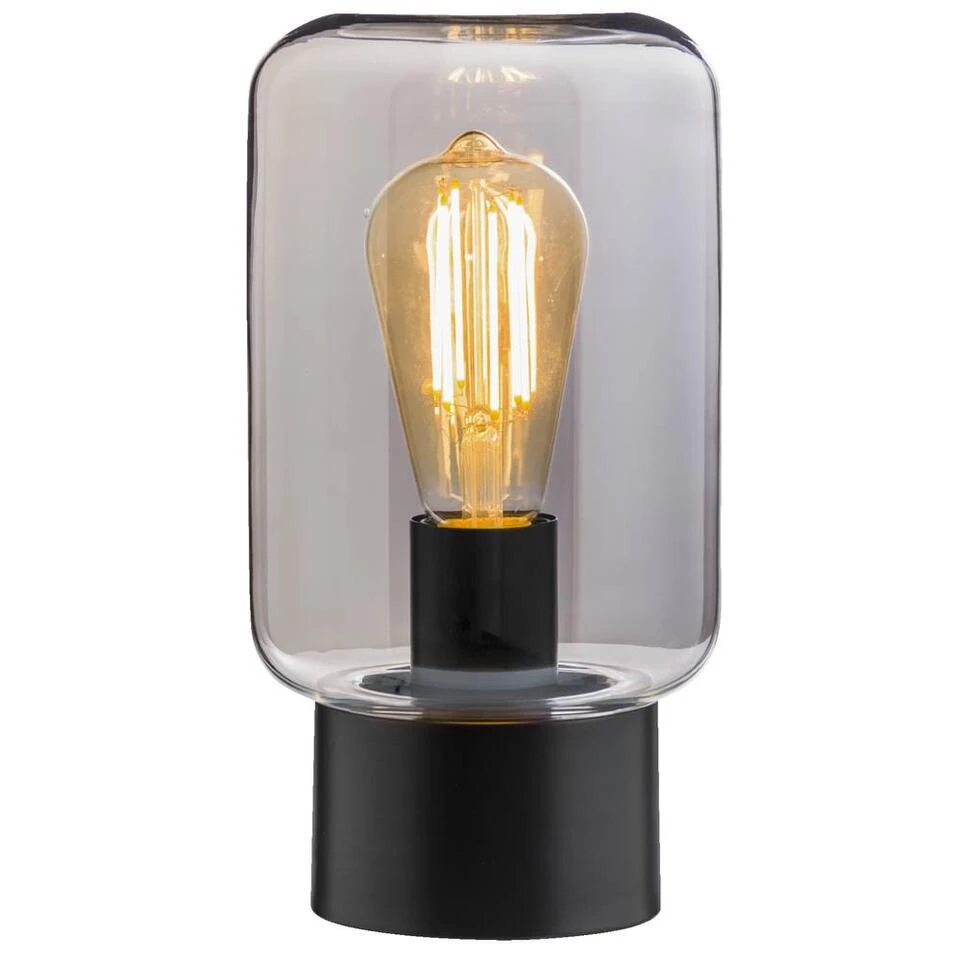 Tafellamp Zimmer is zwart van kleur en heeft een afmeting van 26x14x14 cm. Deze lamp is eenvoudig van design, maar valt daardoor juist op. Deze lamp heeft een E27 fitting en vraagt om een stijlvolle en trendy lichtbron (niet meegeleverd).