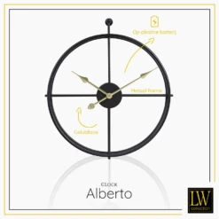 LW Collection Wandklok Alberto Zwart Met Gouden Wijzers 42cm