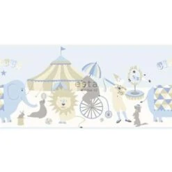 ESTAhome Behangrand – Circus – Lichtblauw, Beige – 26,5 Cm X 5 M
